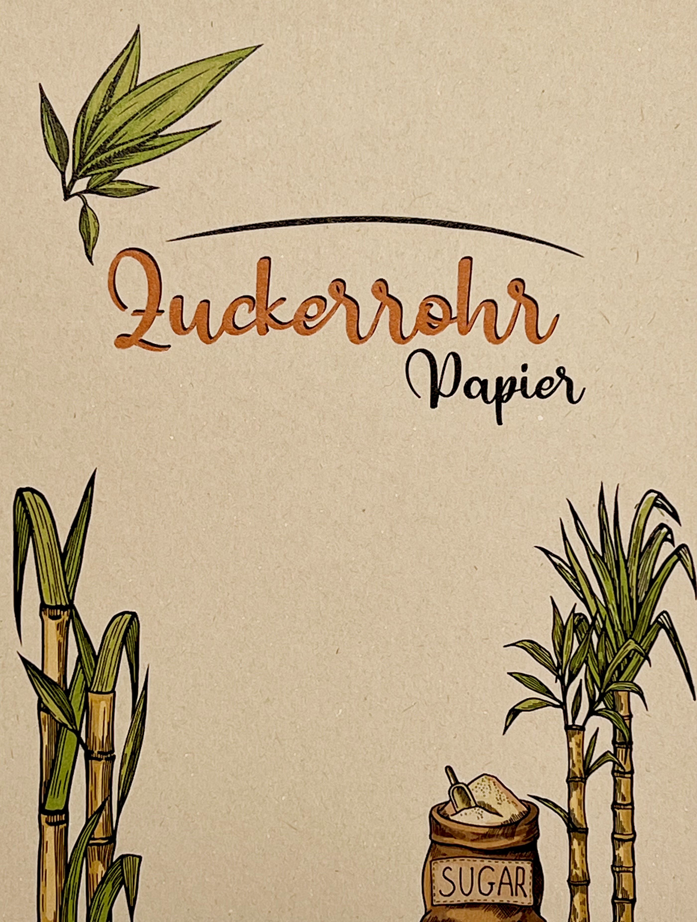 Die Faltblätter DIN A4, wahlweise aus 90g, 150g oder 200g starkem Zuckerrohrpapier (das entspricht einer herkömmlichen Papierstärke von 110g, 180g oder 250g), überzeugen durch eine leicht cremige Papierfärbung und schöne Haptik.